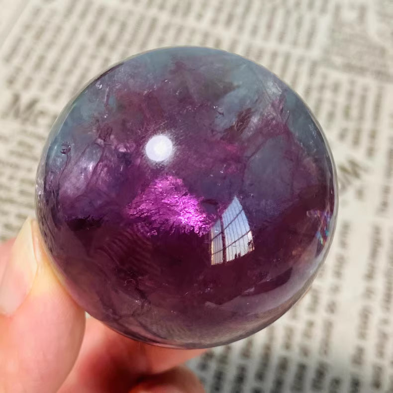 Carved from genuine Madagascar fluorite, this 4.8cm (48mm) sphere blends natural artistry with elegant craftsmanship:
